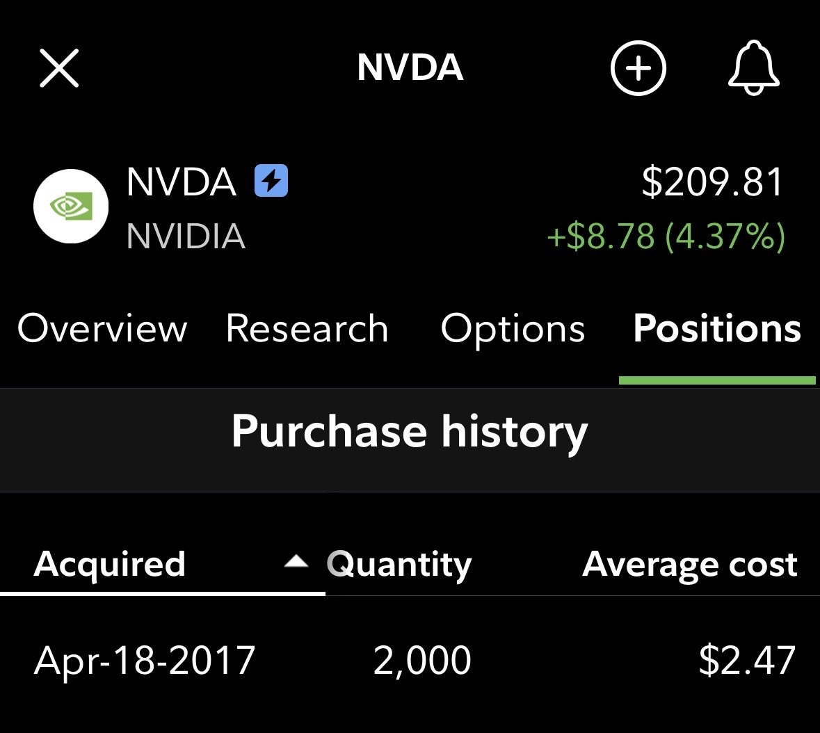 当年买的第一手英伟达 $NVDA,成本到今天,只有$2.47。