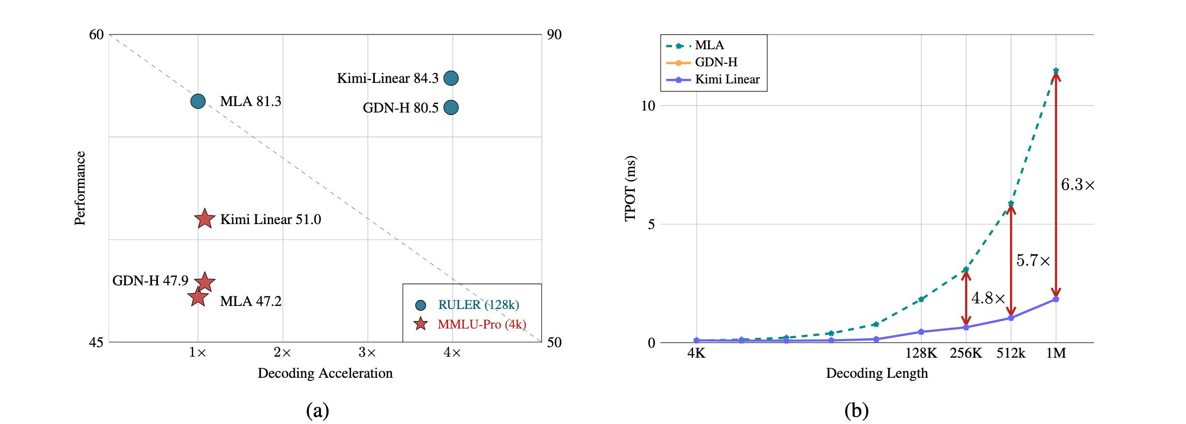 Kimi最近发力了,刚刚放出来一款:Kimi Linear,在1M 上下文长度下,KV缓存减少75%,解码吞吐提升6倍