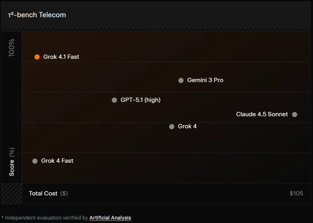 xAI 今天发布了两项面向开发者的重要更新: Grok 4.1 Fast ,以及一套全新的 Agent Tools API 。这两者组合在一起,旨在让开发者更轻松地构建可在真实环境中独立完成任务的智能代理。